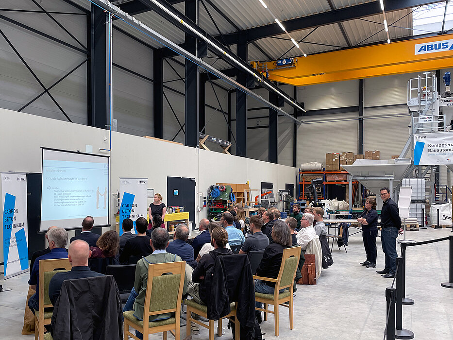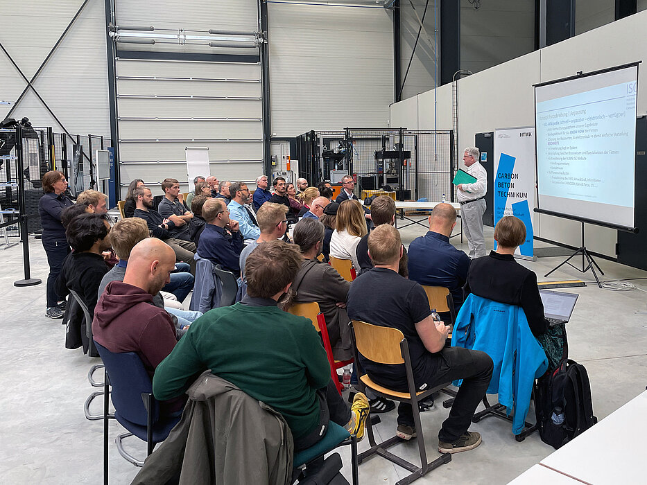 Das Forschungsprojekt RUBIN-ISC erarbeitet Standards und Leitfäden für das Bauen mit Carbonbeton. Im Carbonbetontechnikum trafen sich die Beteiligten zum Austausch.