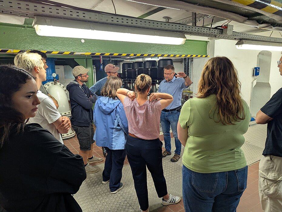 Die zweite Exkursion führte uns auf das Gelände der Leipziger Wasserwerke in Probstheida. Im historischen Wasserturm bekamen wir einen spannenden Überblick über die Entwicklung der städtischen Wasserversorgung und besichtigten im Anschluss das Betriebsgelände. Im Fokus standen aktuelle Herausforderungen wie Trockenheit, Bevölkerungswachstum und Infrastrukturalterung – sowie zukünftige Lösungen, etwa der Bau eines neuen Wasserwerks bei Naunhof. Die Exkursion bot wertvolle Einblicke in die Schnittstelle zwischen technischer Versorgung, Ressourcenschutz und Klimaanpassung in der Daseinsvorsorge.